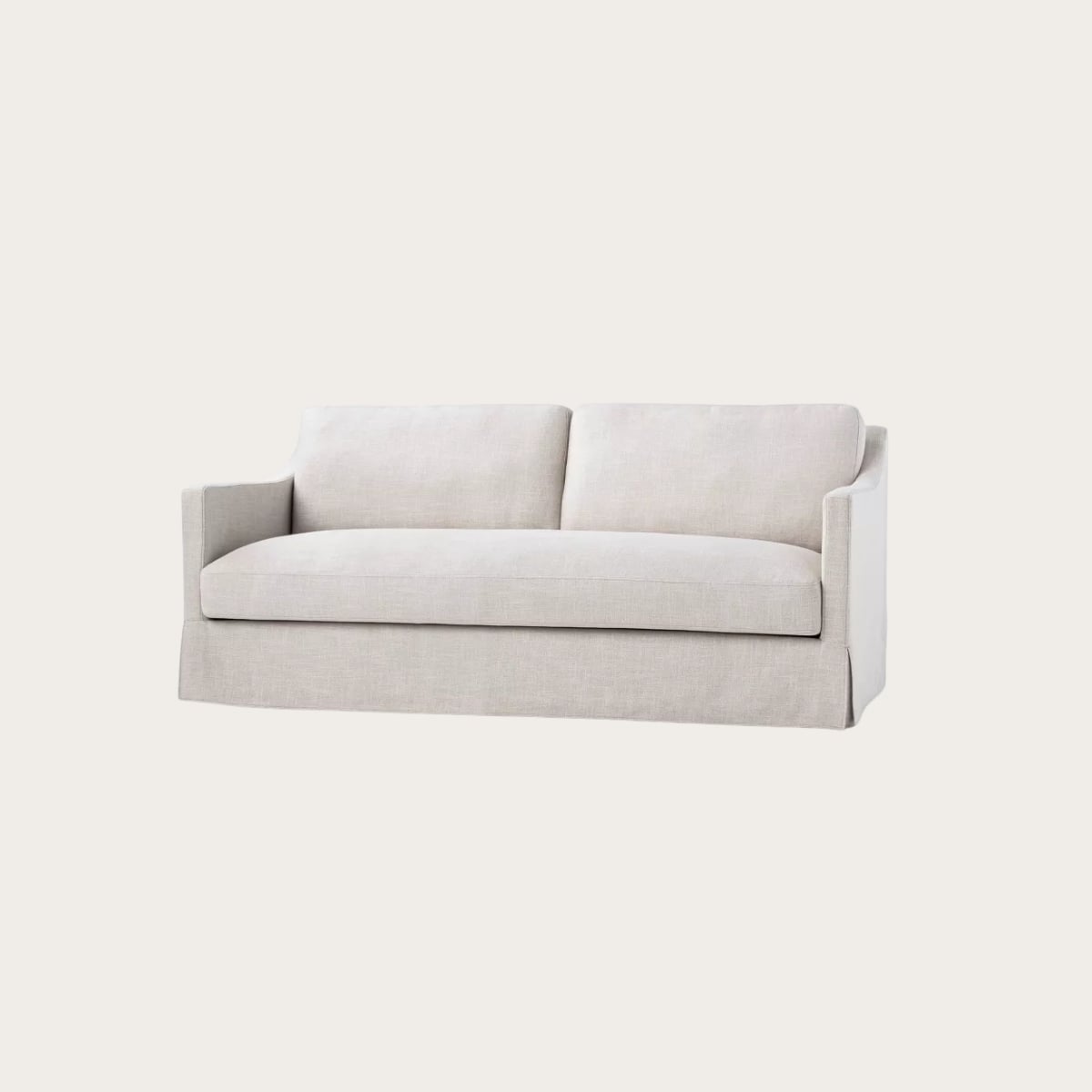 Don’t overlook the legs. They’re a finishing detail that significantly affects how a sofa reads in a room. Tapered wood legs feel mid-century and warm. Metal legs read more contemporary. Skirted or no-leg sofas feel more traditional.