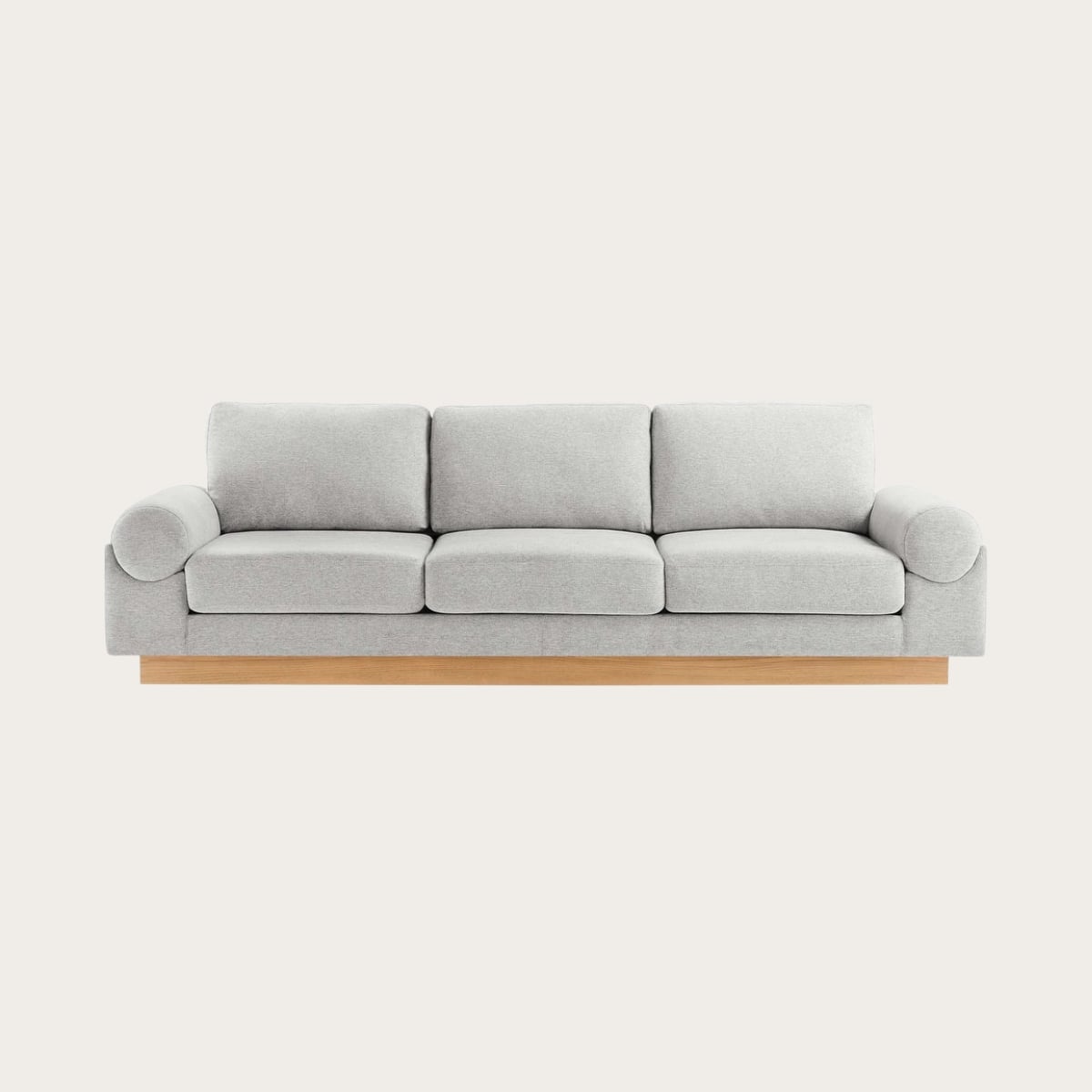 The clean-lined silhouette and oversized bolster-style arms give this sofa a modern, designer look that feels elevated well beyond its price point. Upholstered in stain-resistant polyester with dense foam cushions and pocket spring support, it’s designed to balance durability with everyday comfort. The deep seat and sturdy wood veneer plinth base also add an architectural presence that works beautifully in modern or transitional spaces.