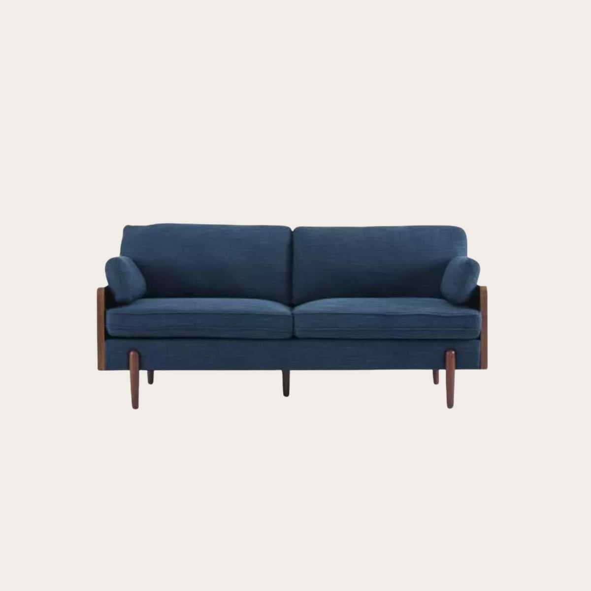 This dark blue option has a versatile modern silhouette with subtle tapering legs and structured cushions. The saturated upholstery adds color without feeling trendy or dated, and it’s a great choice if you want a focal point sofa that still reads clean and elevated.