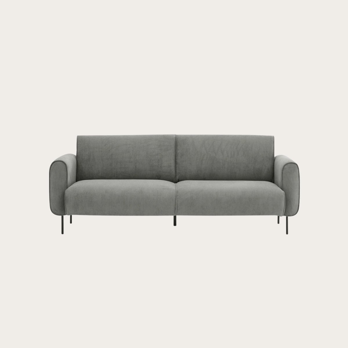 The Minimore sofa features a clean, modern silhouette wrapped in soft corduroy upholstery for added texture and warmth. Pocket-spring cushions layered with high-density foam and supported by a solid wood frame provide balanced comfort and everyday durability. Slim metal legs and generous seating give it a streamlined, contemporary look that feels elevated – while staying well under $1,000.